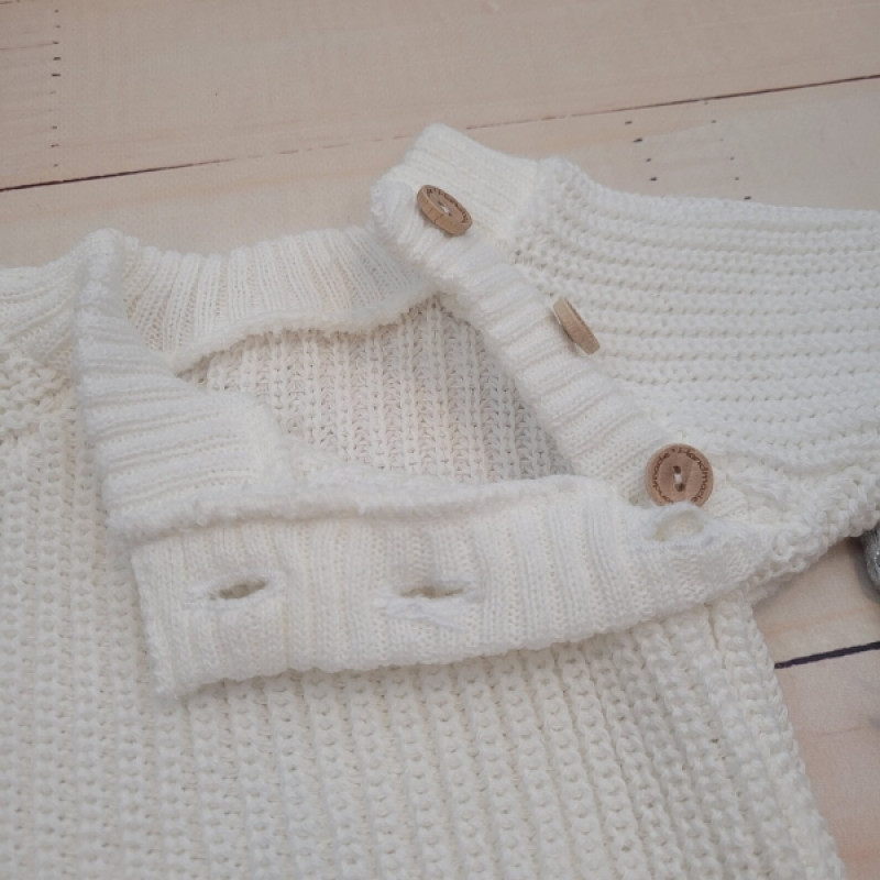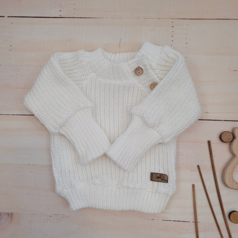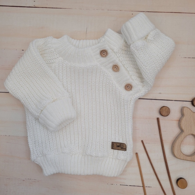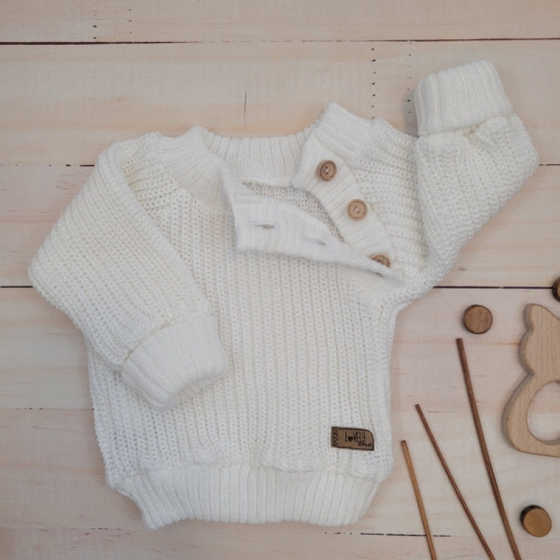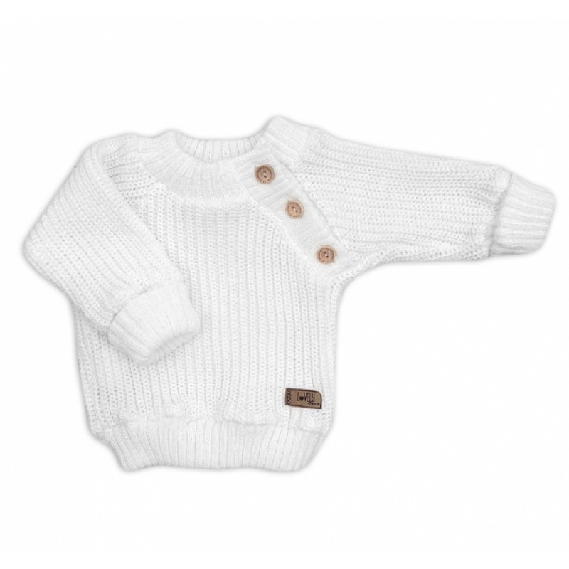 Pletený svetrík s gombíkmi Lovely, predĺžené náplety, biely, 68/74