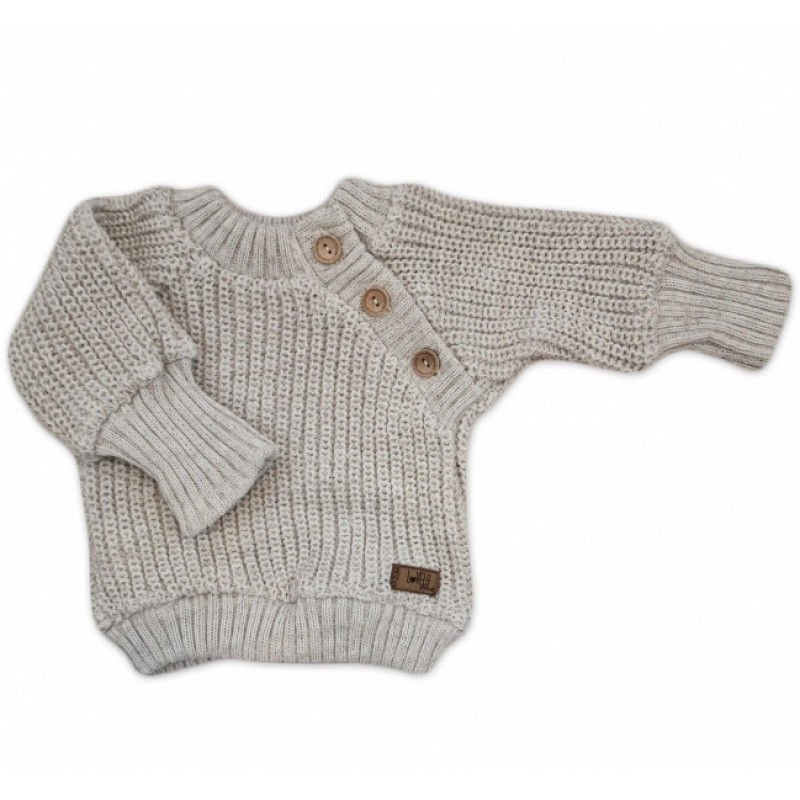 Pletený svetrík s gombíkmi Lovely, predĺžené náplety, sv. šedý, 80/86