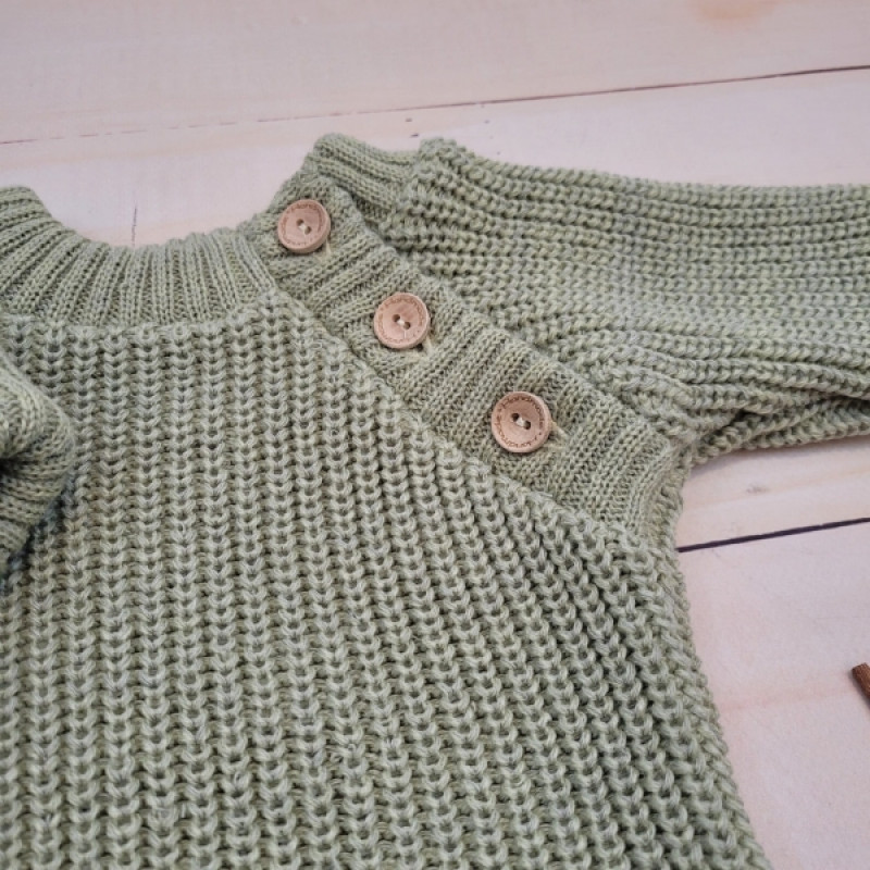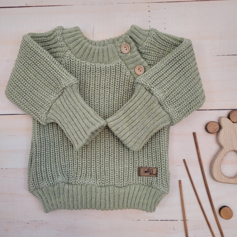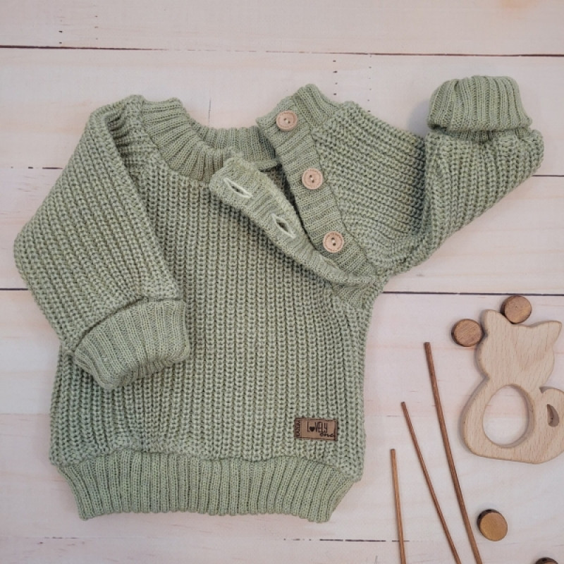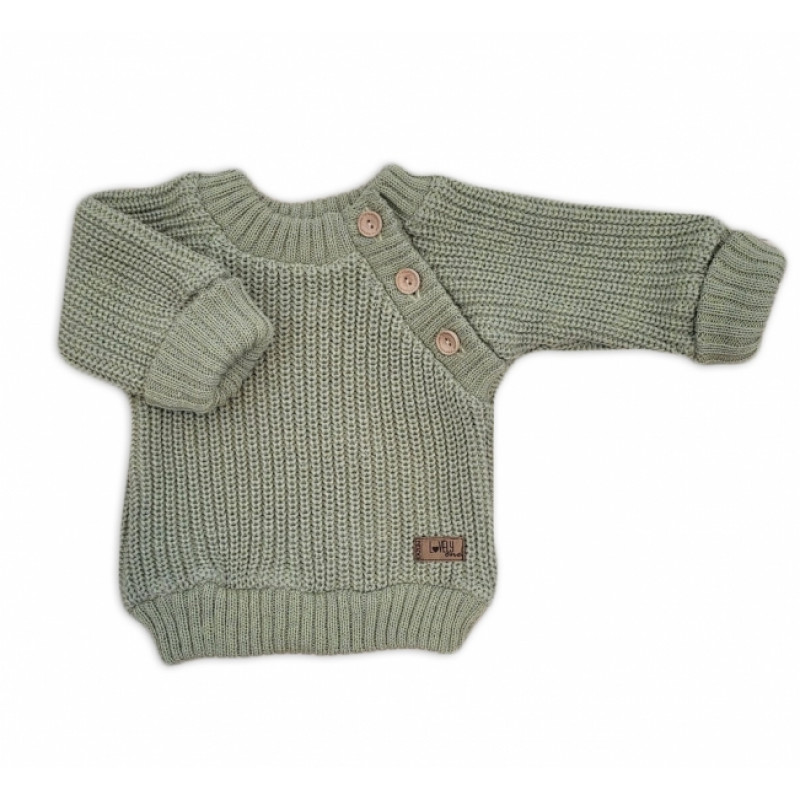 Pletený svetrík s gombíkmi Lovely, predĺžené náplety, khaki, 80/86