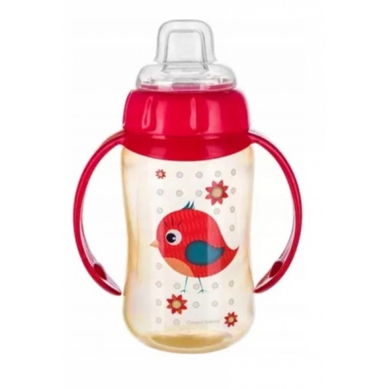 Fľaša má špeciálne tvarovaný tvar, ktorý uľahčuje držanie pri pití, rovnako ako pohodlné, široké rukoväte pre vlastné držanie v malých rukách. Po odstránení rukoväťou možno šálku použiť ako fľašu s vodou pre staršie deti. Mäkký silikónový náustok nedráždi jemné ďasná a prvé zuby dieťaťa, účinne pomáha pri učení pitie a chráni pred vyliatím.