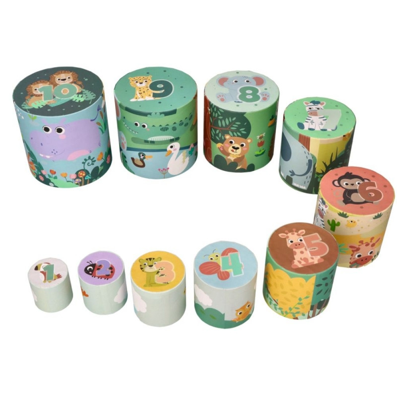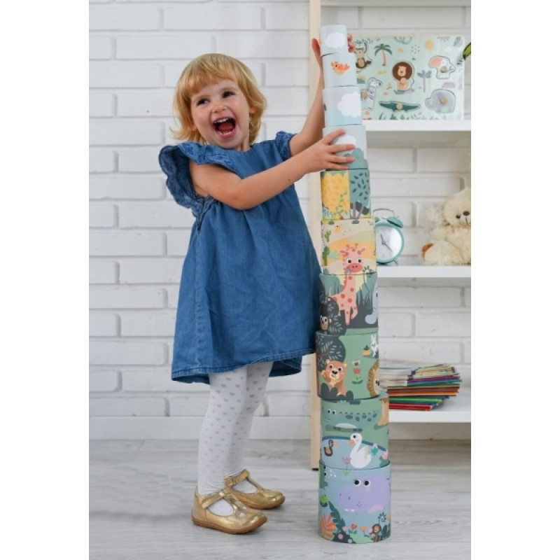 Skladačka pyramída je vynikajúca hračka, ktorá vám umožní precvičiť motorickú koordináciu a obratnosť. Pyramída s kelímkami je ďalším návrhom zo série Safari. Sada sa skladá z 10 kelímkov s motívom džungle.