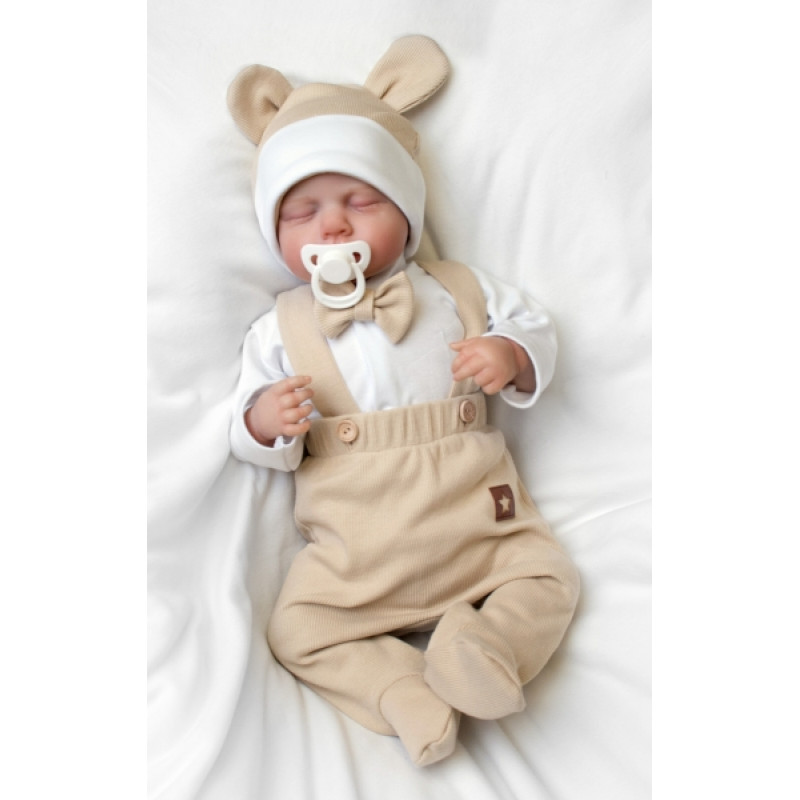 Bavlnená súprava Gentleman 3D, body, polodupačky s lacnom + čiapočka, béžová/biela, veľ.68