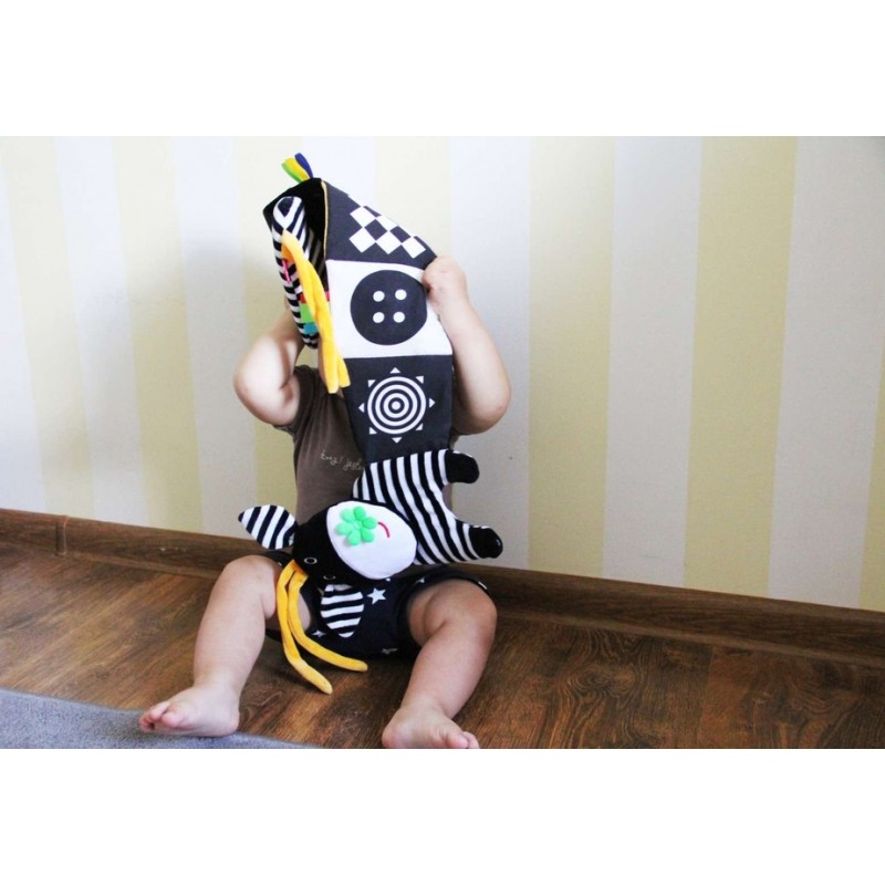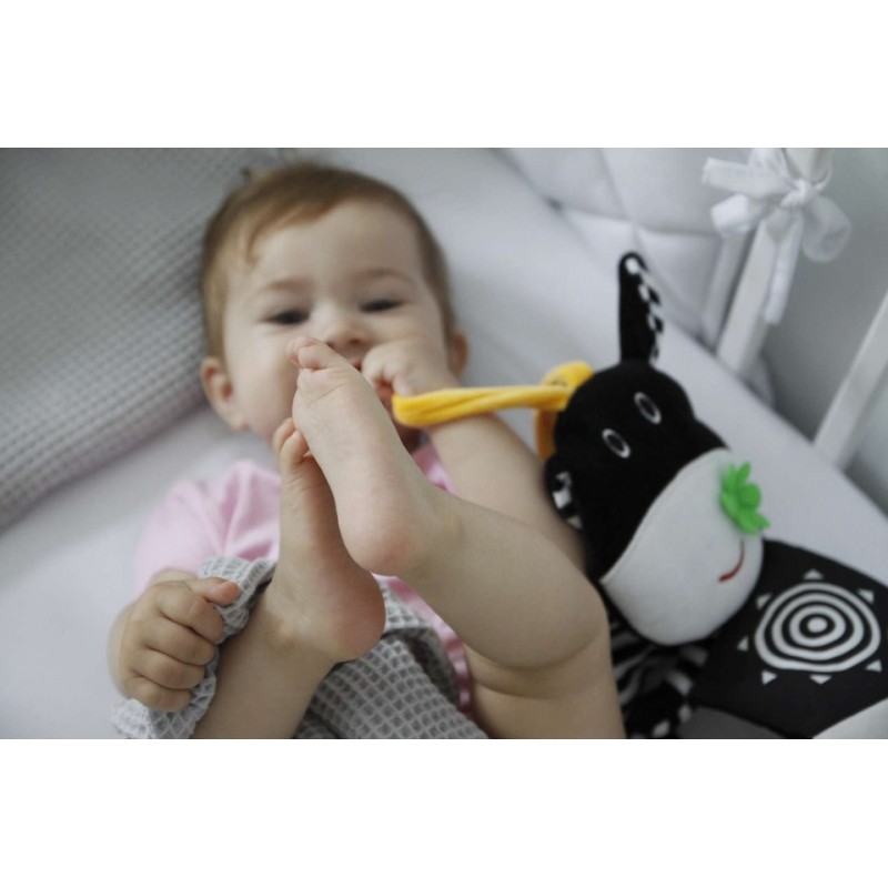 Hencz Toys Textilná knižka šustík - kravička, čierno/biela