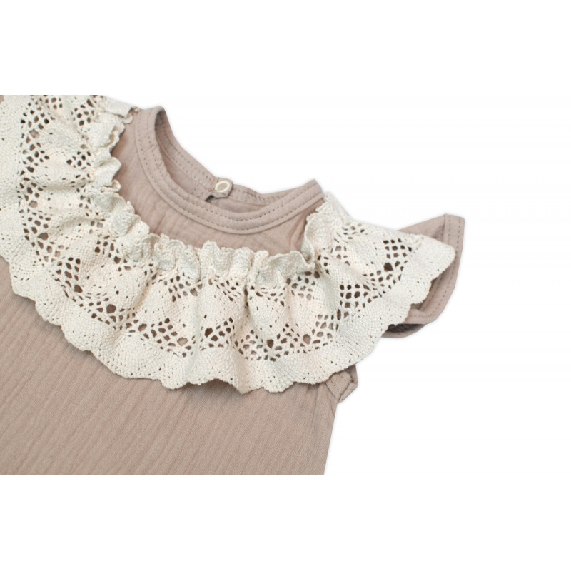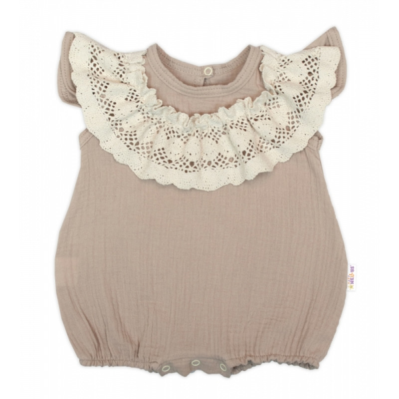 Body s nohavičkami, mušelín, s čipkou - béžové, veľ. 68