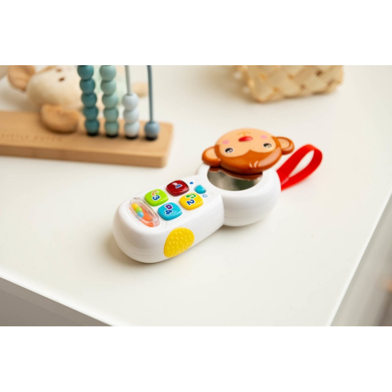 Vzdelávacia hračka je ľahká a interaktívna hračka, s ktorou je veľa zábavy. Telefón je vybavený hrkálkou s guličkami, interaktívnymi tlačidlami vydávajúcimi rôzne zvuky a zrkadlom skrytým pod obrazom zvieratka. Vďaka nízkej hmotnosti ho dieťa ľahko zdvihne. Telefón stimuluje zmysly a rozvíja predstavivosť.