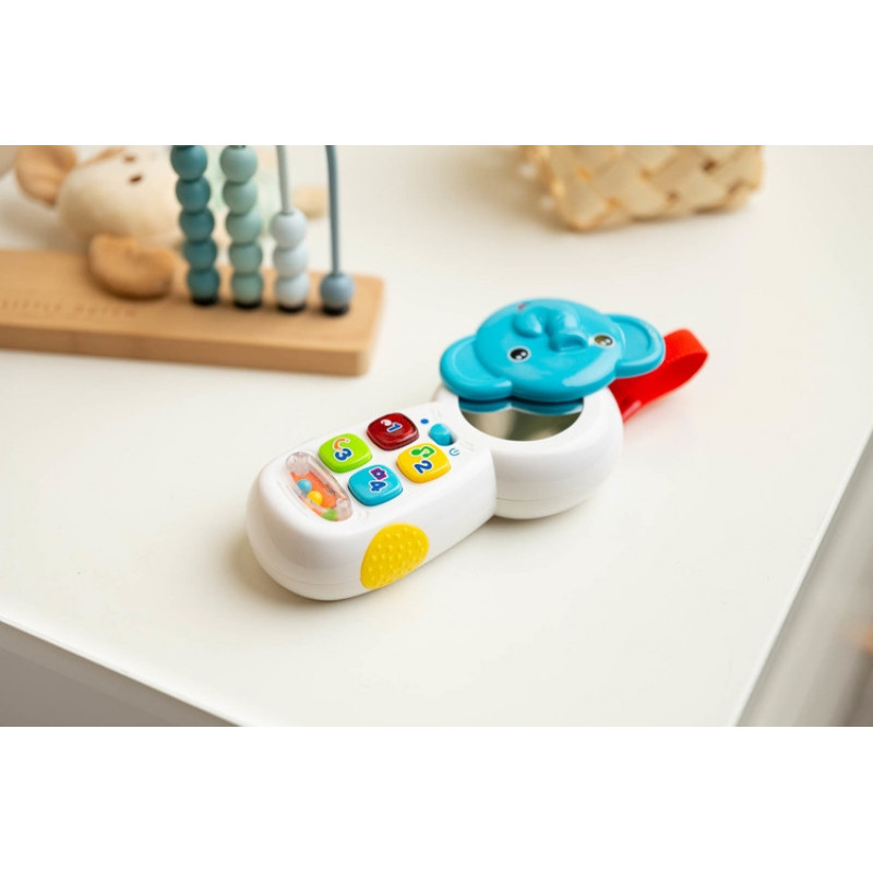 Vzdelávacia hračka je ľahká a interaktívna hračka, s ktorou je veľa zábavy. Telefón je vybavený hrkálkou s guličkami, interaktívnymi tlačidlami vydávajúcimi rôzne zvuky a zrkadlom skrytým pod obrazom zvieratka. Vďaka nízkej hmotnosti ho dieťa ľahko zdvihne. Telefón stimuluje zmysly a rozvíja predstavivosť.