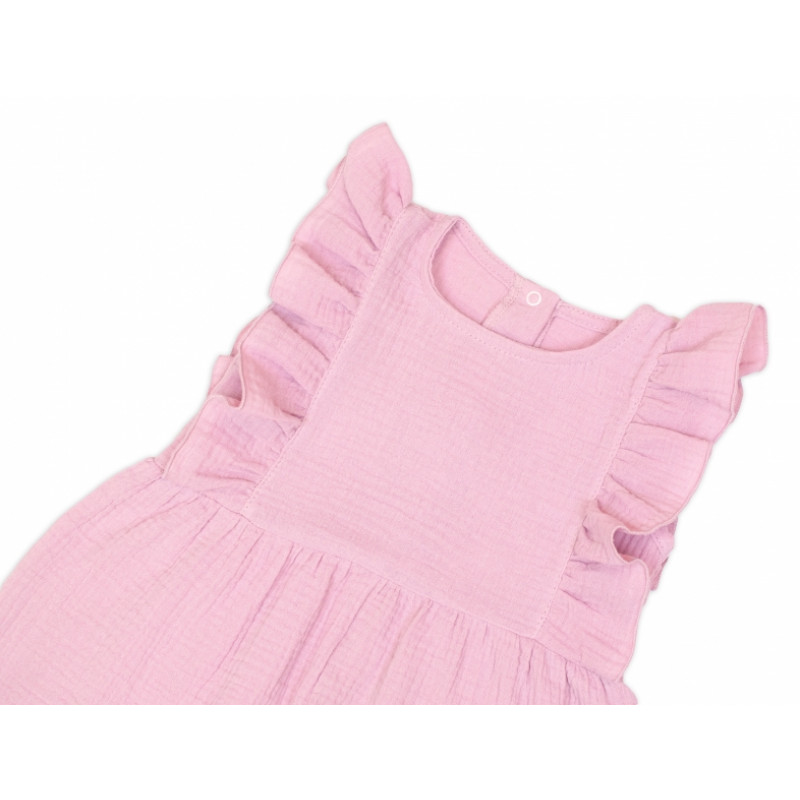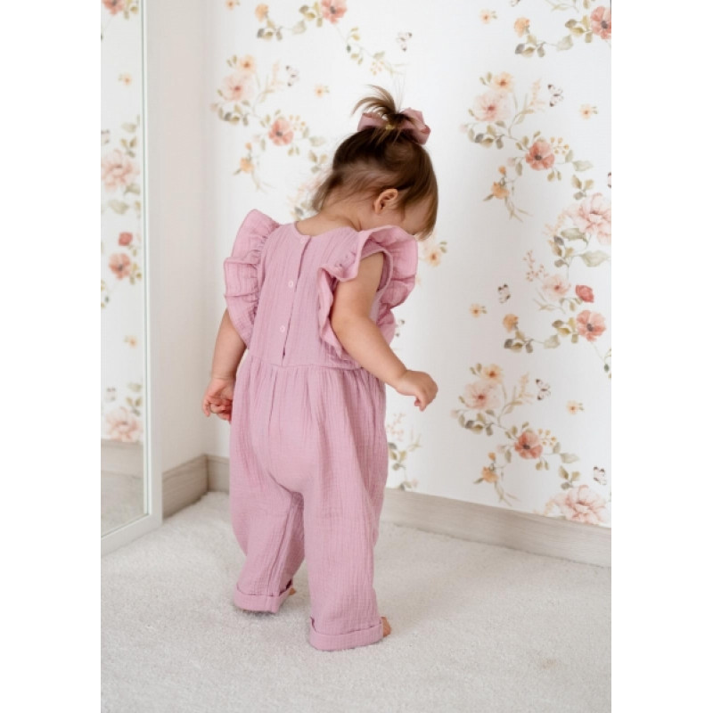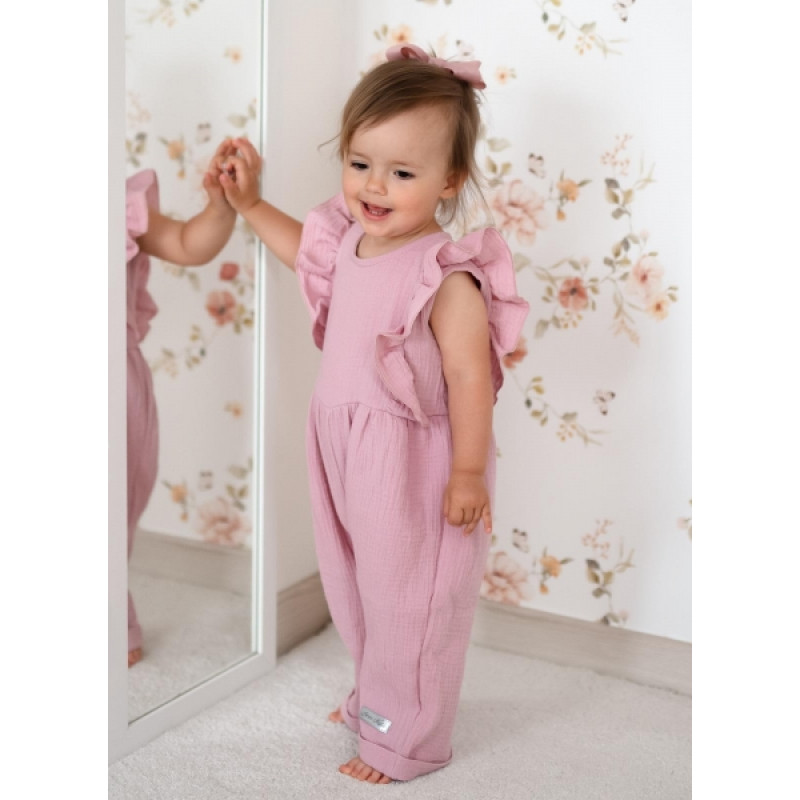 Letný mušelínový overálok pre dievčatká s volánikom Star - staroružová, veľ. 104