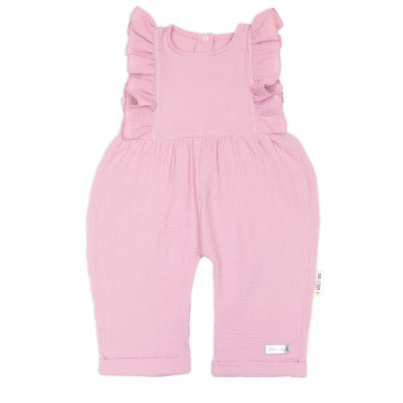 Letný mušelínový overálok pre dievčatká s volánikom Star - staroružová, veľ. 110