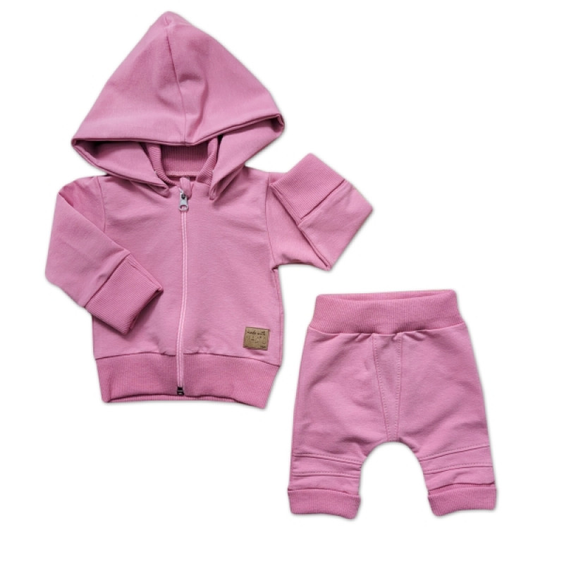 2-dielna bavlnená tepláková súprava s odopínacou kapucňou - ružová, veľ. 62