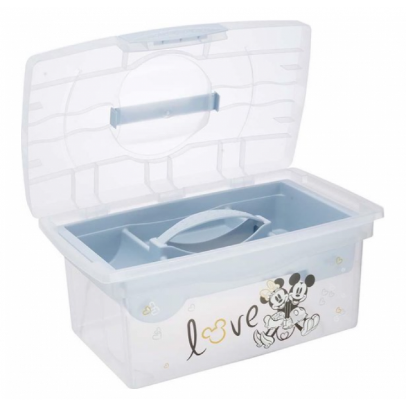 Prenosný box s organizérom Mickey Mouse , transparentná/modrá