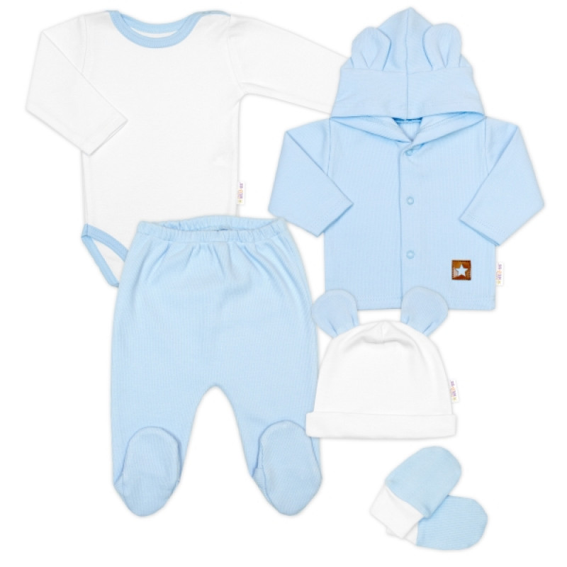 Rebrovaná sada, Star 5D, body, polodup., kabátik, čiapka, rukavice - modrá, biela, 68