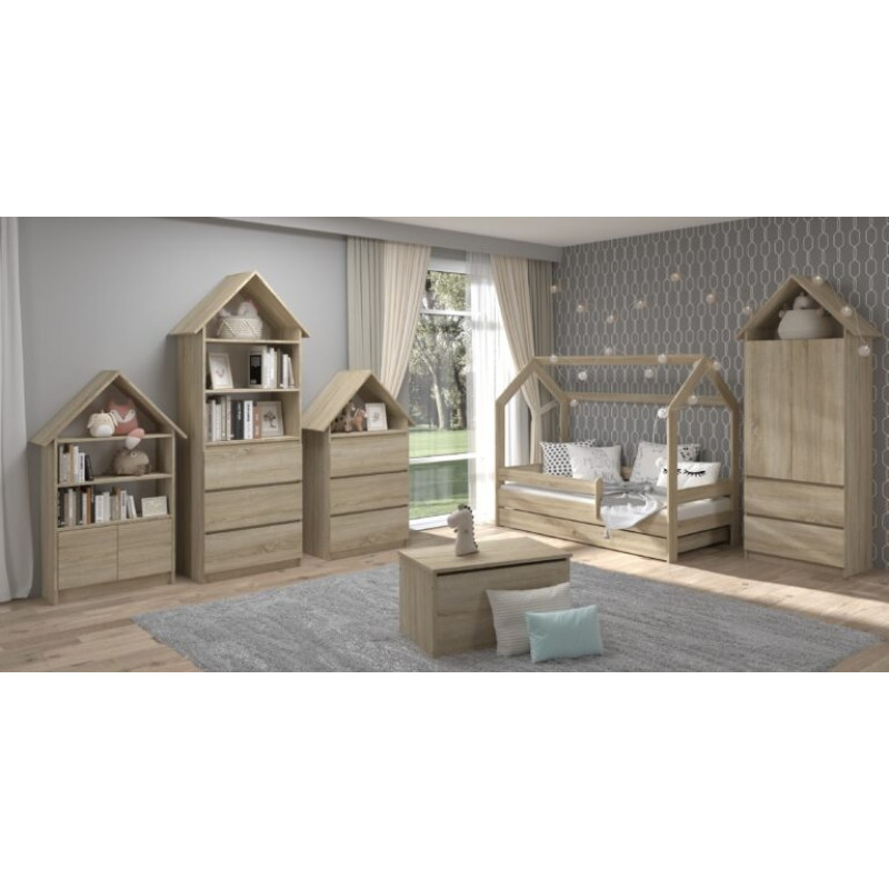 Detská posteľ Domček s výsuvnou prístelkou 180 x 80 cm - Dub Sonoma