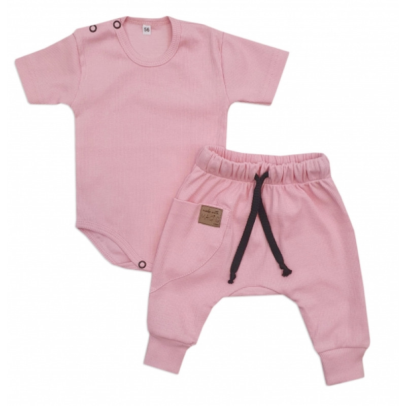 Rebrovaná súprava body kr. rukáv + tepláčiky Magic, bavlna, ružová