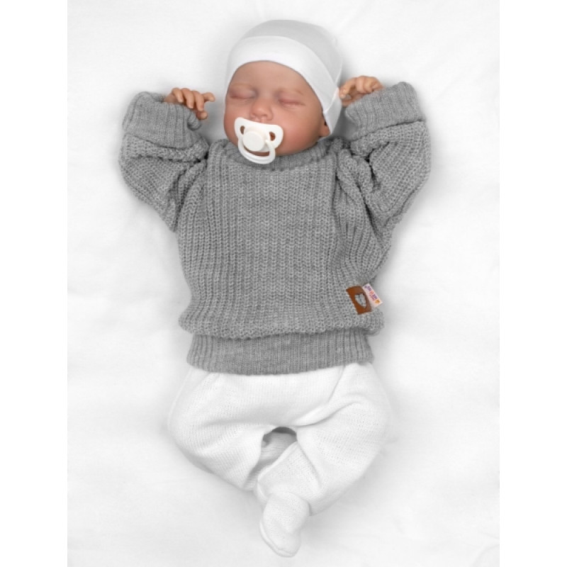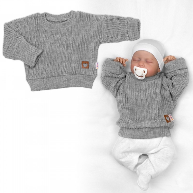 Rastúci oversize pletený svetrík pre bábätko, sivý