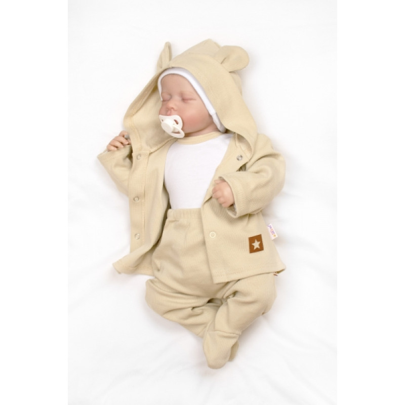 Rebrovaná sada, Star 5D, body, polodupačky, kabátik, čiapka, rukavice - béžová, biela, 62