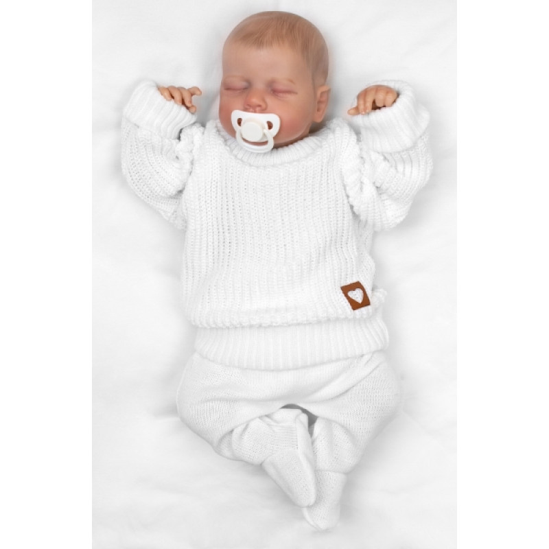 Rastúci oversize pletený svetrík pre bábätko, biela, 68/74