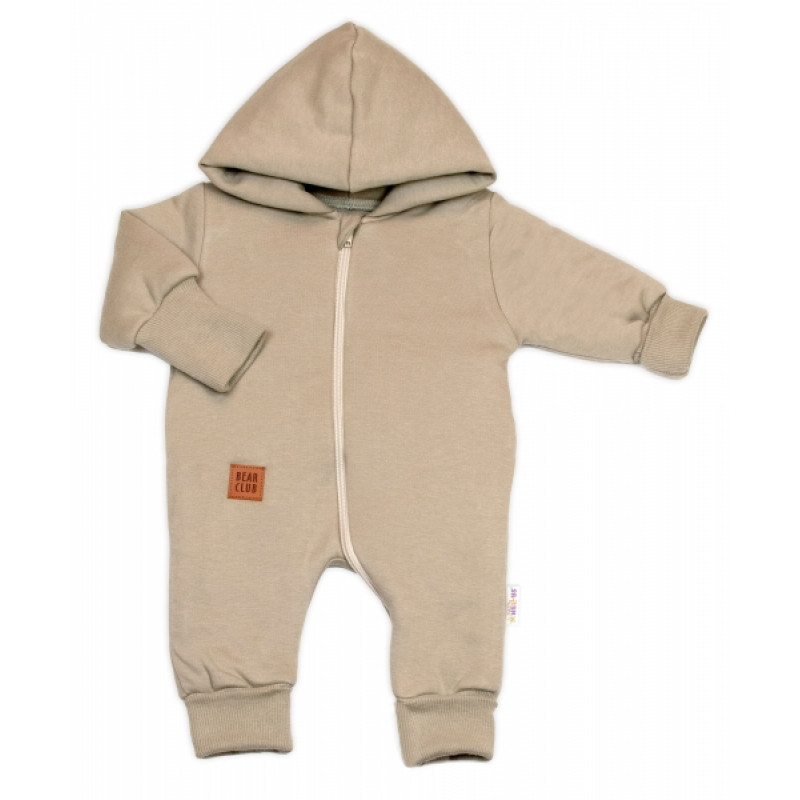 Bavlnený oteplený overálok s kapucňou, rukavičky, topánky, 3D sada Nature - taupe, vel. 74