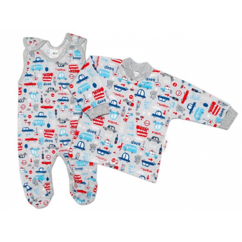 Baby Nellys 2 - dielna sada, bavlnené dupačky s košieľkou Auta, sivá