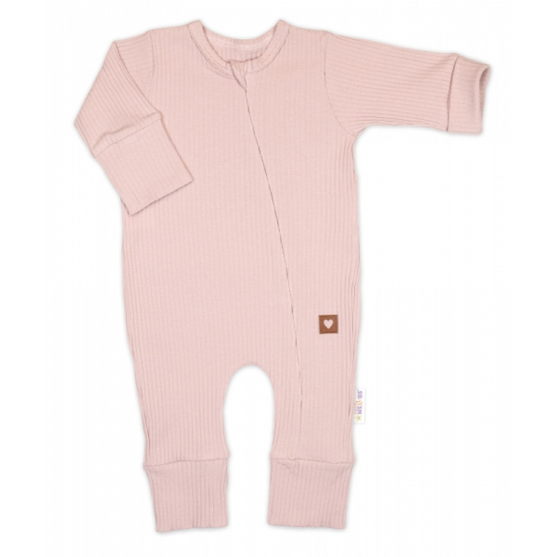 Rastúci rebrovaný overálek, čiapočka a topánočky, 3D, Nature - púdrovo ružová, veľ. 86/92
