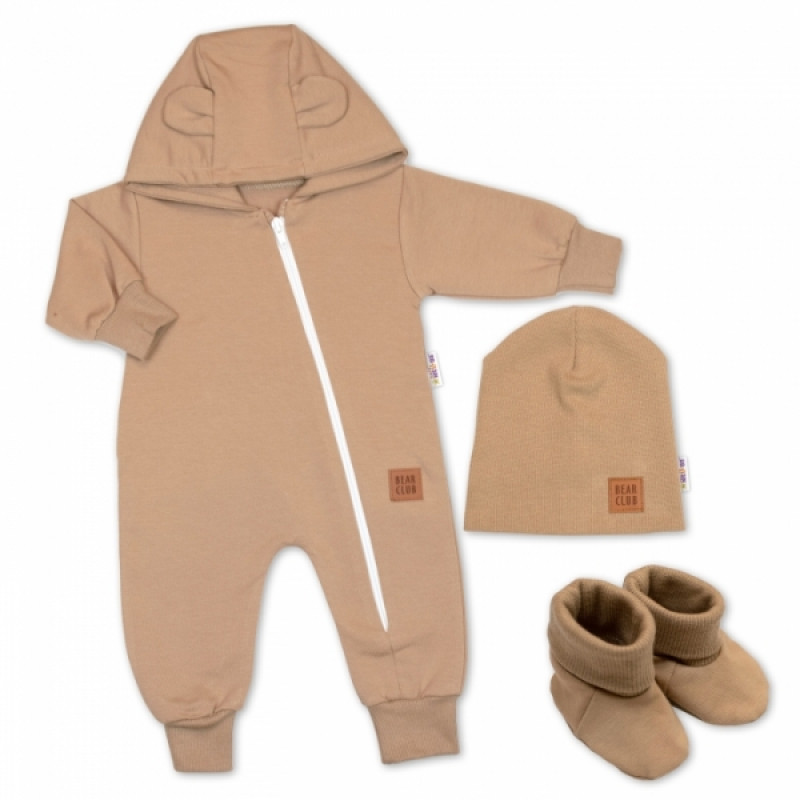Rastúci teplákový overal pre bábätko, čiapky, topánky, 3D, Nature - karamelová, veľ. 80/86
