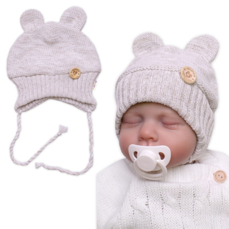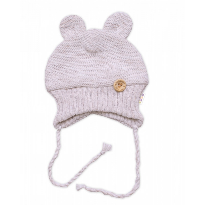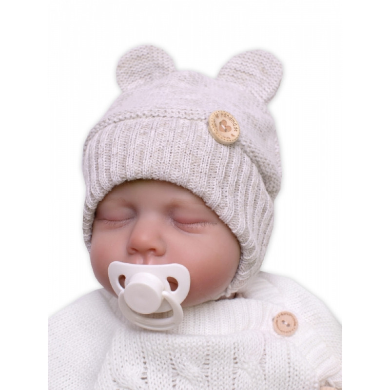 Zimná pletená čiapka s uškami na zaväzovanie Baby Nellys