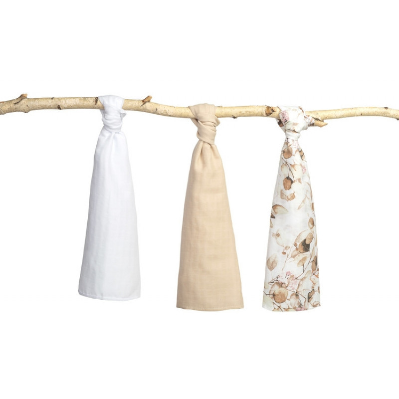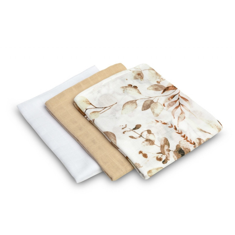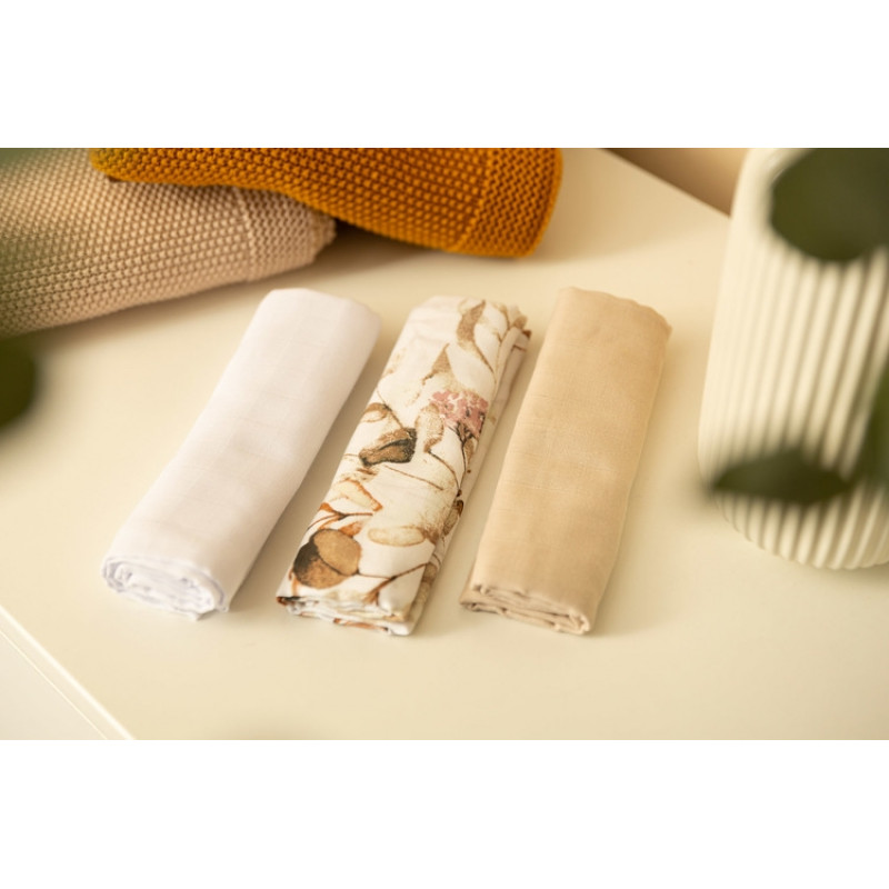 Mušelínové mäkké plienky LUX, 3ks, Kvety, biela/béžová/so vzorom