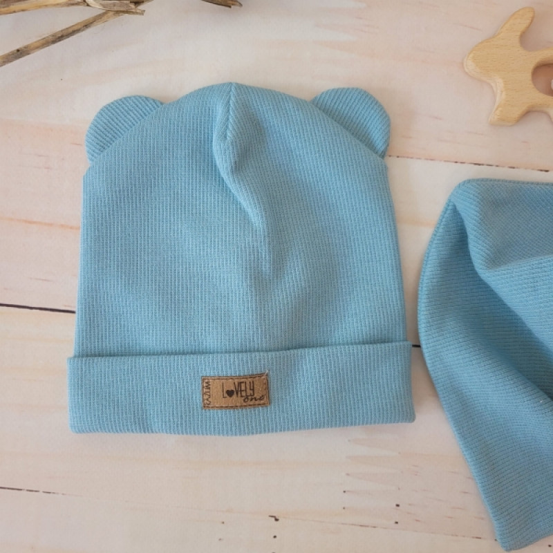 Dvojvrstvová rebrovaná čiapočka s uškami + šatka, Lovely One, morská modrá, veľ. 92/98