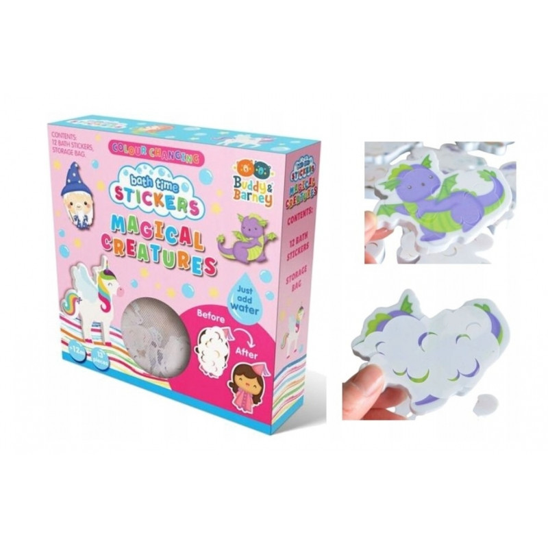 Vtipné samolepky s motívom víl, jednorožcov, drakov a ďalších bájnych bytostí od renomovaného výrobcu Buddy&Barney vykúzlia úsmev na tvári vašich najmenších aj pri tom najdôkladnejšom drhnutí! Hlavne že každá samolepka je prekvapením, pretože až po ponorení do vody sa vám stvorenie skryté na obrázku odhalí.