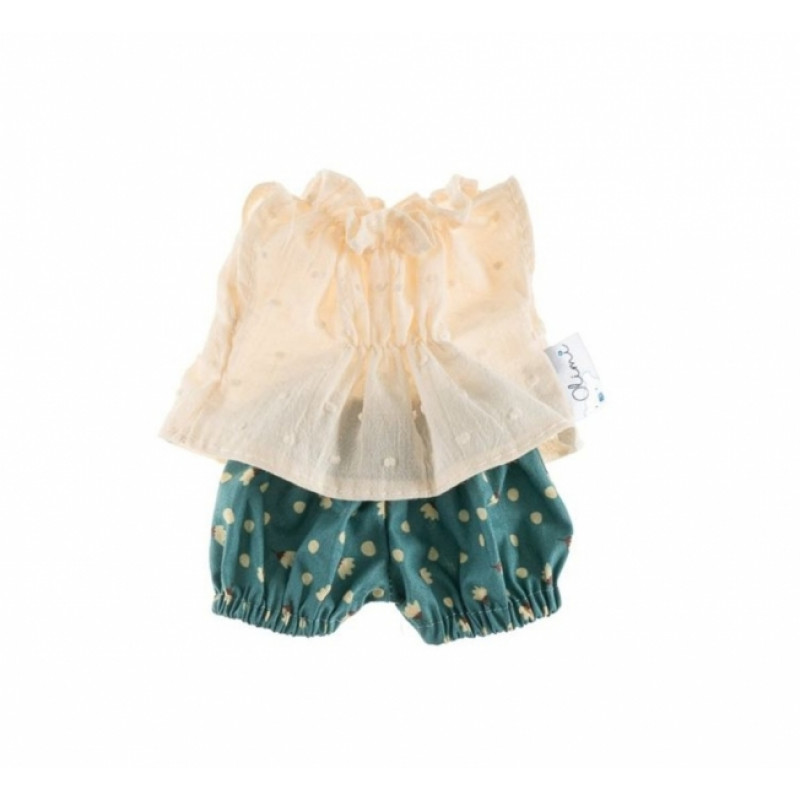 Oblečky pre bábiky, tunika a kraťasky, Bodky - ecru/zelená