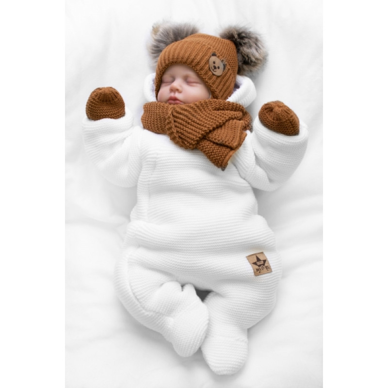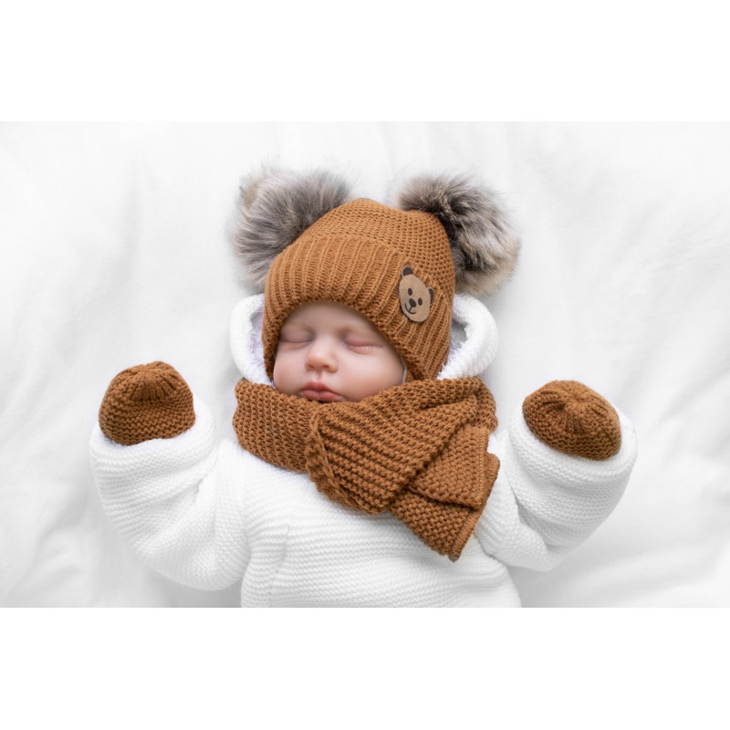 Detská sada, zimná čiapka so šálom + rukavičky 3D, Teddy Bear - hnedá