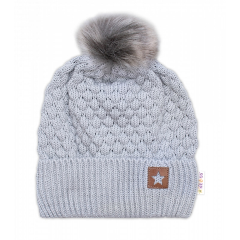 Zimná čiapka Star s chlpáčkovým brmbolcom - šedá