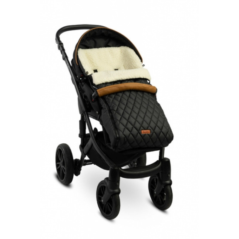 Prešívaný vlnený fusak do kočíka - čierný