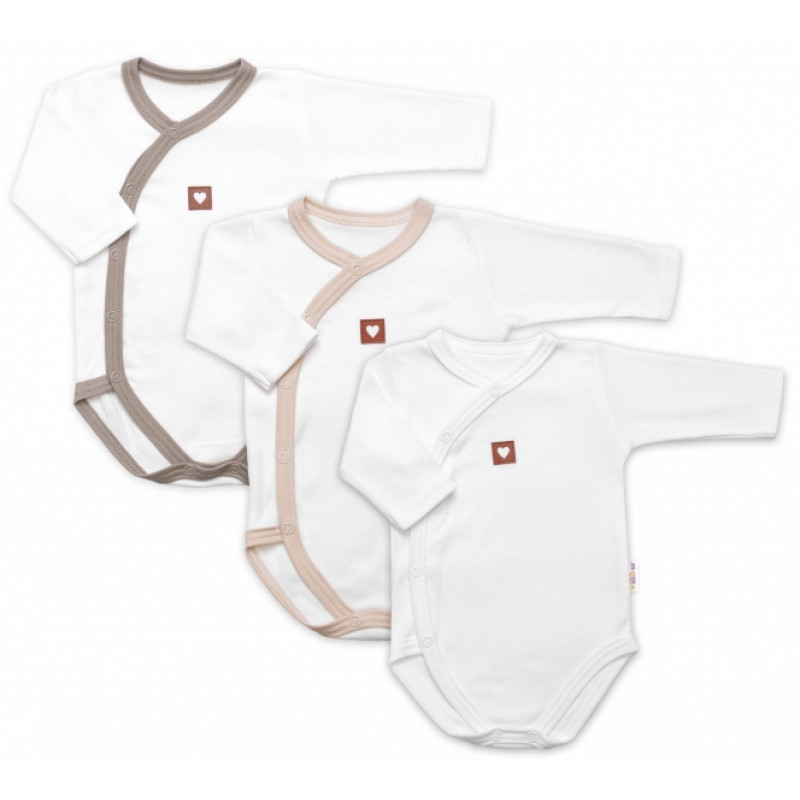 Baby Nellys ČR, Veľ. 56/62, 3D- 3x body, Farba: béžová/taupe/biela