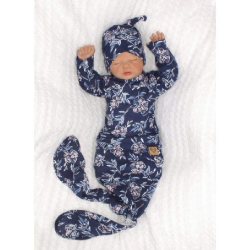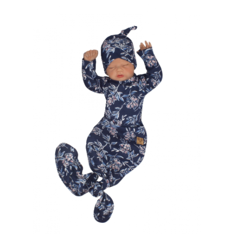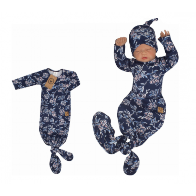 Z & Z Dojčenský rastúce bavlnený overal + čiapočka Kvety, granát