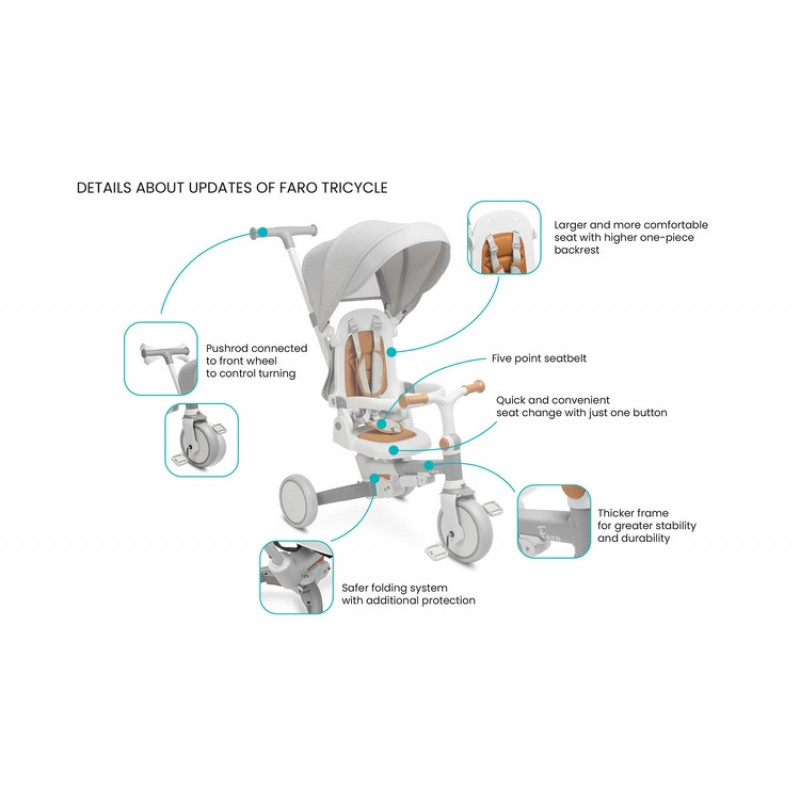 Jeho štýlový dizajn, ľahká manipulácia a praktické funkcie robia z Faro ideálnu voľbu pre moderných rodičov, ktorí hľadajú kvalitný a multifunkčný produkt.