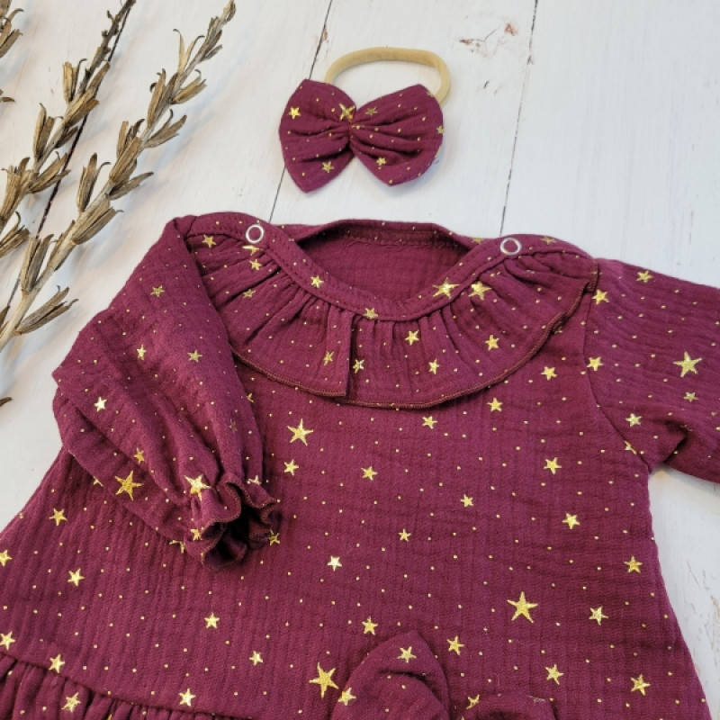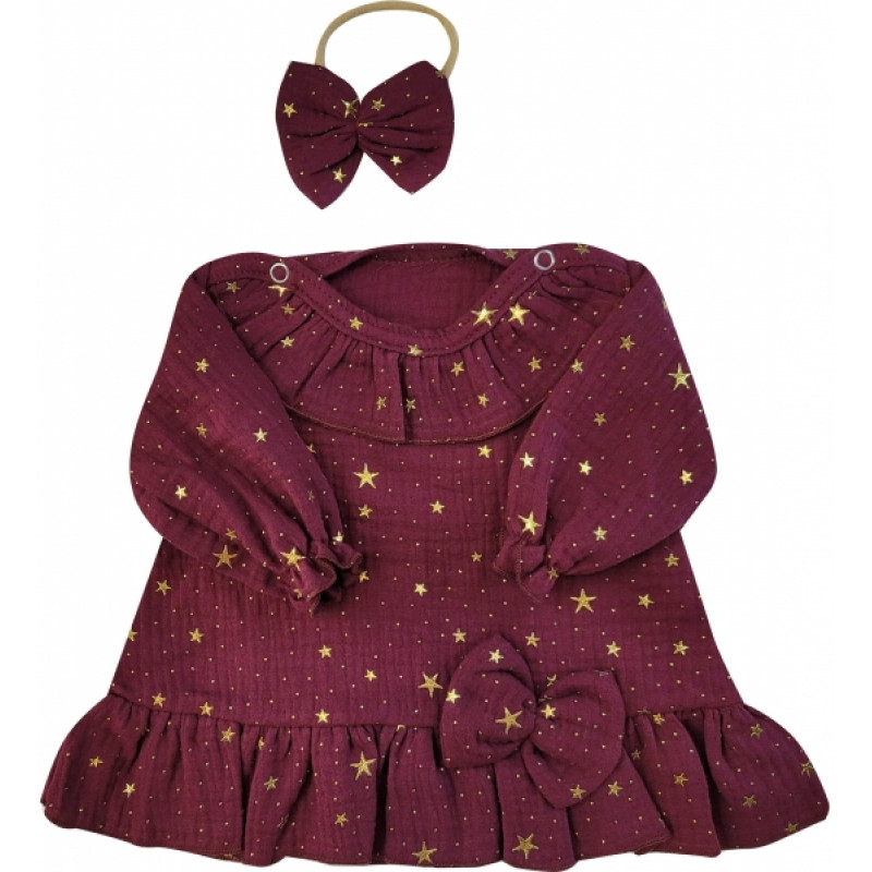 Mušelínové šatôčky s hviezdičkami + čelenka Z&Z, bordó