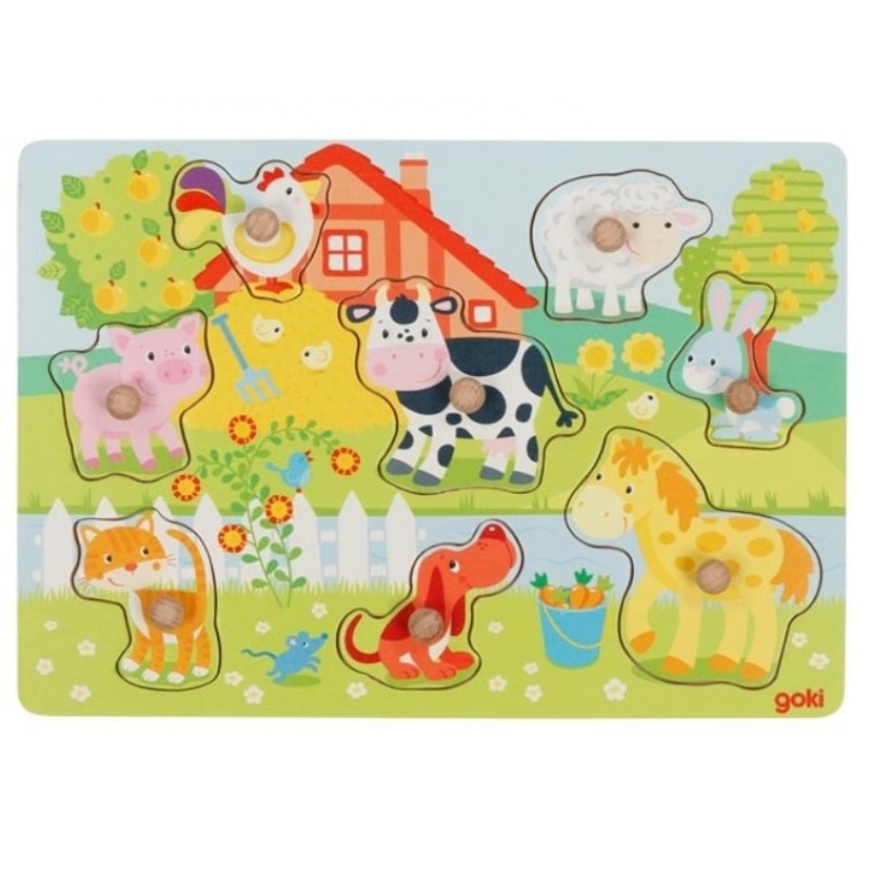 Goki Edukačná drevená vkladačka/puzzle s úchytmi Farma