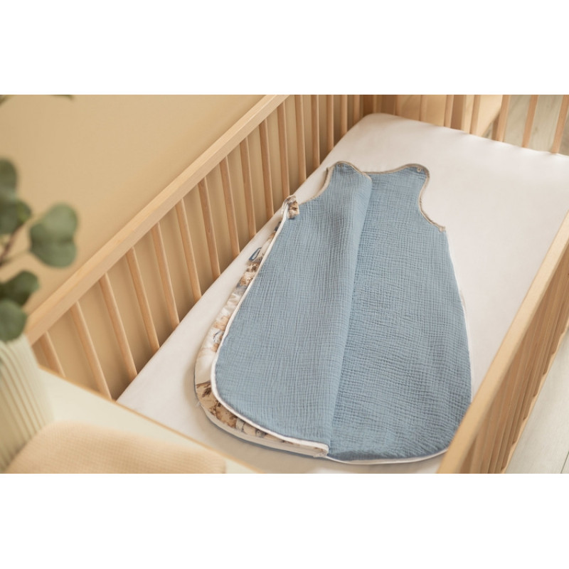 Detský spací vak je navrhnutý tak, aby poskytoval vášmu bábätku teplo a bezpečie už od prvých dní života (vhodný pre deti 0–9 mesiacov). Vyrobený z mäkkej bavlny s antialergickým polstrovaním, je ideálny na citlivú pokožku dieťaťa. Vnútorná časť a zadná strana sú z príjemnej **mušelínovej bavlny**, ktorá je priedušná a jemná na dotyk. Spací vak neobsahuje žiadne tvrdé alebo dráždivé prvky, ktoré by mohli narušiť pohodlie dieťaťa. Vďaka praktickému obojstrannému zipsu, ktorý je vedený po celom obvode vreca, ľahko vymeníte plienku bez toho, aby ste museli dieťa vyberať.
