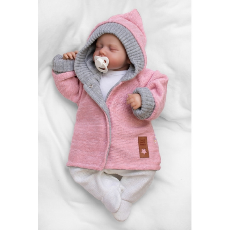 Rastúci obojstranný svetrík s kapucňou Hand Made, ružová-sivá