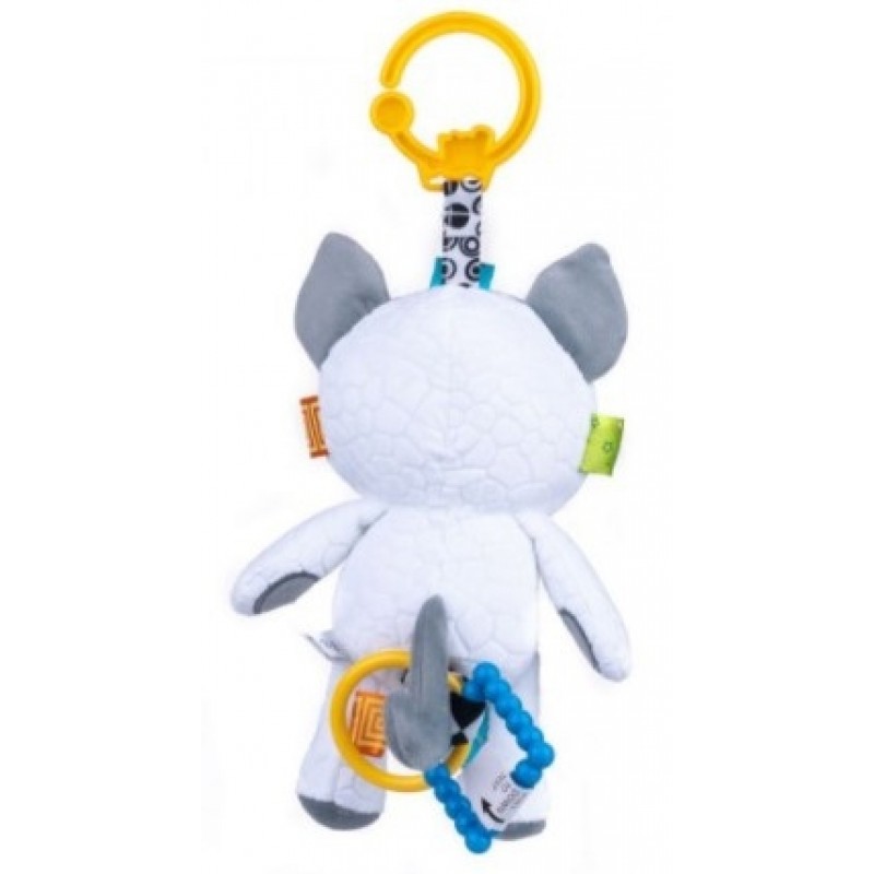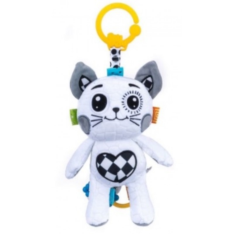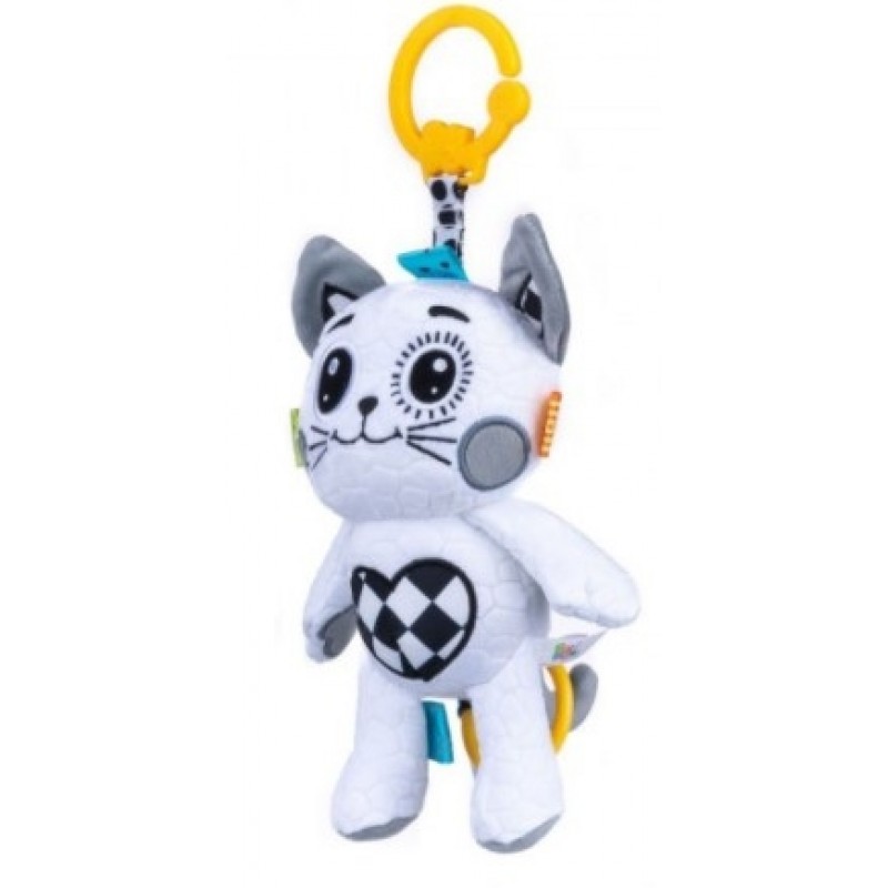 Kontrastná Mačička uspáva tie najmenšie sladkú uspávankou. Má kontrastné vzory a farebné štítky s rôznymi textúrami, ktoré stimulujú zrak a dotyk dieťaťa. Hryzátka pripevnené k prívesku prinesú úľavu prerezávajúcim sa zúbkom. Vďaka praktickej pracke môžete hračku kamkoľvek pripevniť.