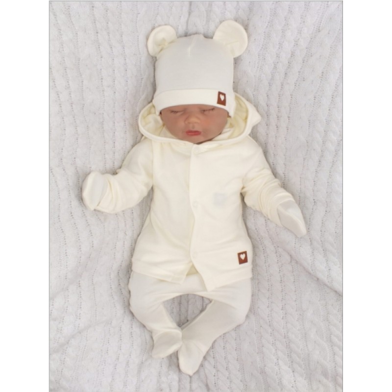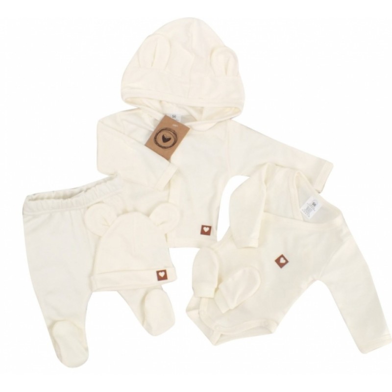 Sada do pôrodnice 5D, body, polodupačky, kabátik, čiapočka, rukavičky - ecru, veľ. 62