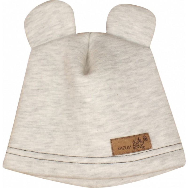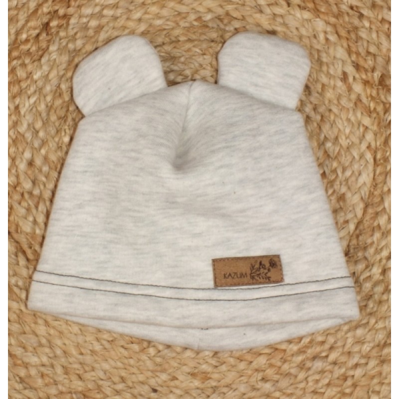 Teplá detská čiapka Kazum, bavlnená s uškami, šedá
