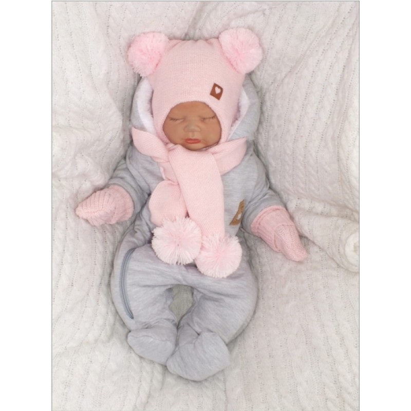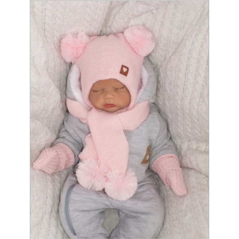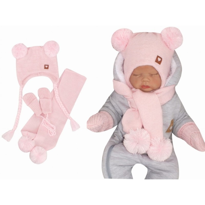 Z&Z Pletená čiapka s brmbolcami, šálom a rukavičky 3v1, ružová