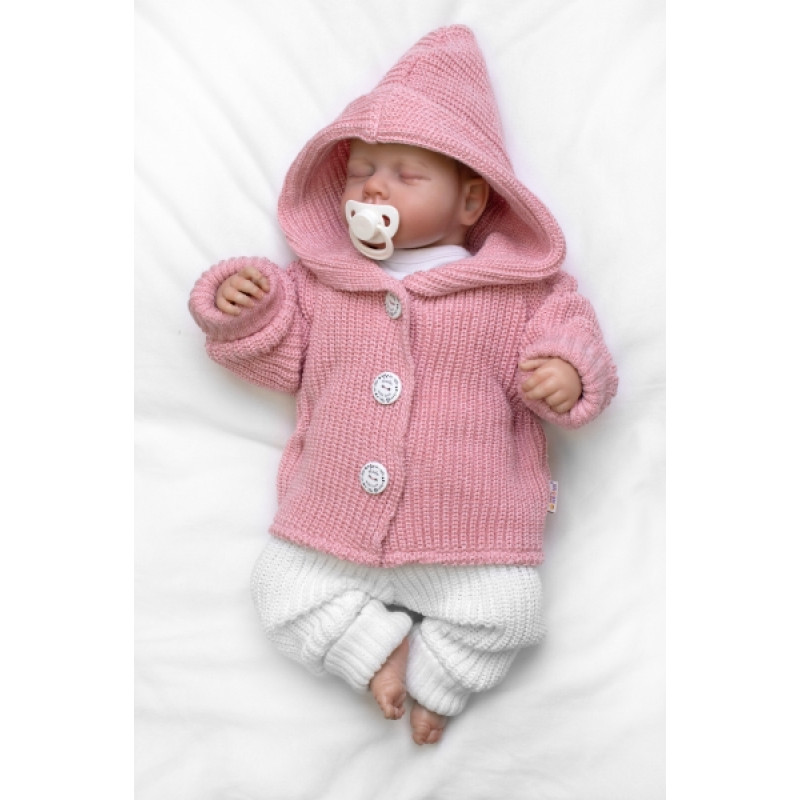 Pletený svetrík s kapucňou a gombíkmi Made with Love, ružový