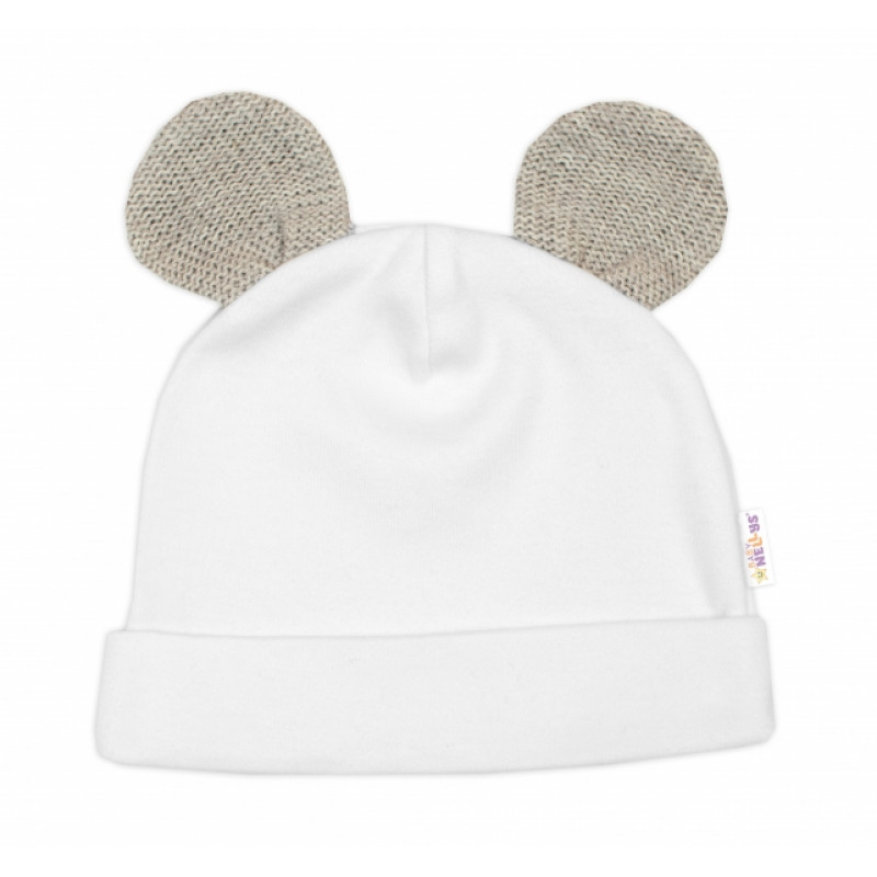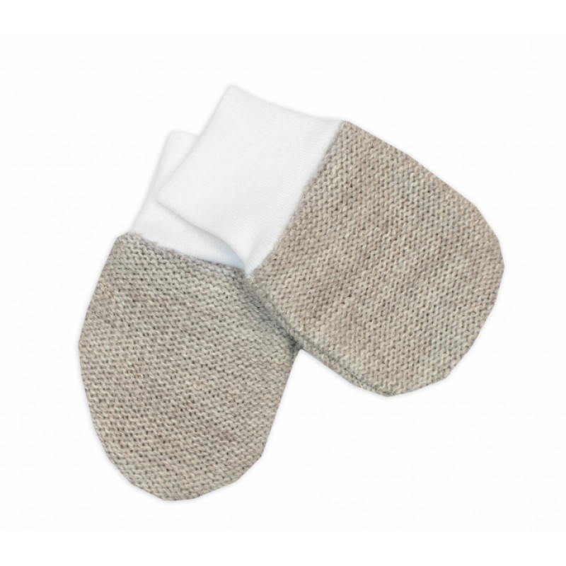 Pletená sada, Star Boy 5D, body, polodupačky, sveter, čiapočka, rukavice - béžová, biela