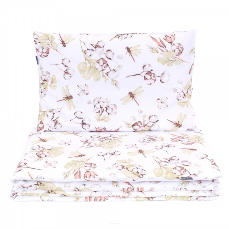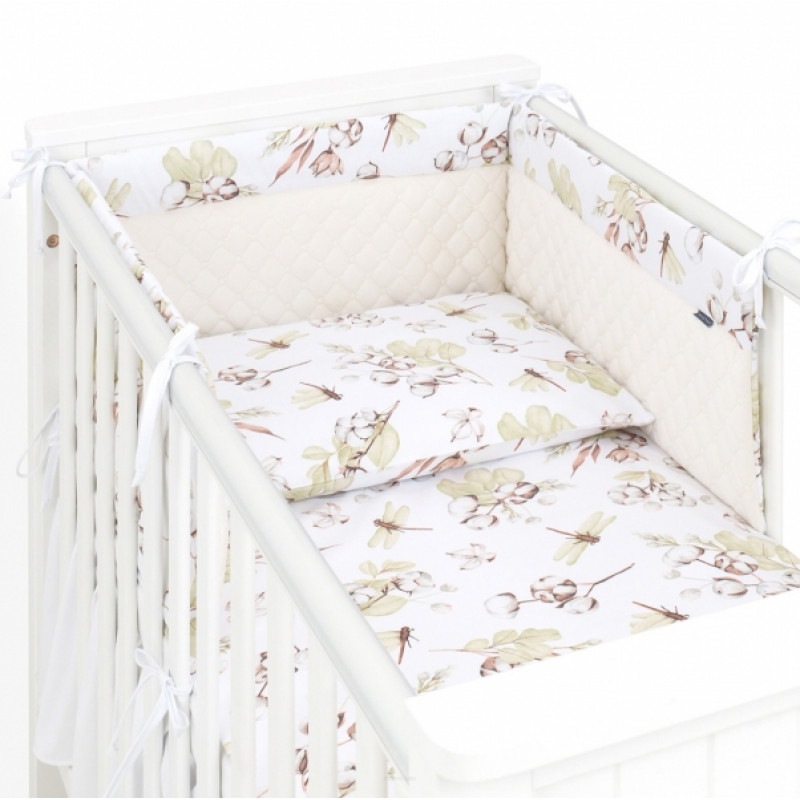 Mantinel s obliečkami do postieľky, 3D sada Velvet, Vážka, ecru/biela, 135x100 cm