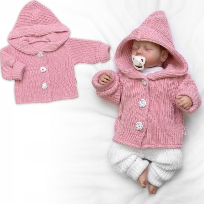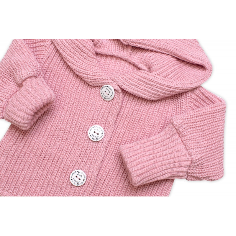 Pletený svetrík s kapucňou a gombíkmi Made with Love, ružový, veľ. 68/74
