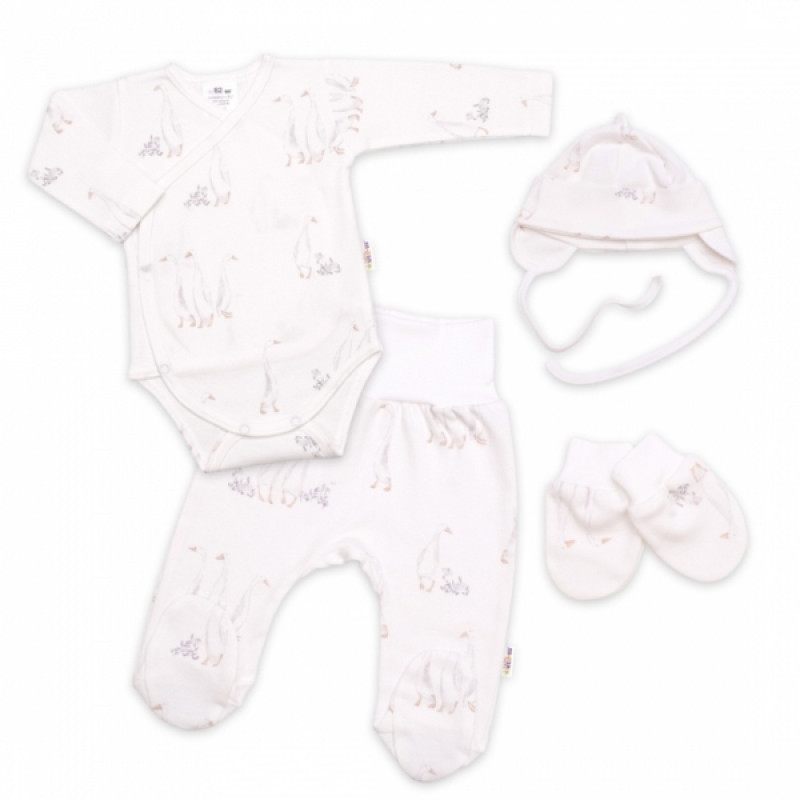 Sada oblečenia pre bábätko, 4D, bavlna, Husičky, smotanové, veľ. 68