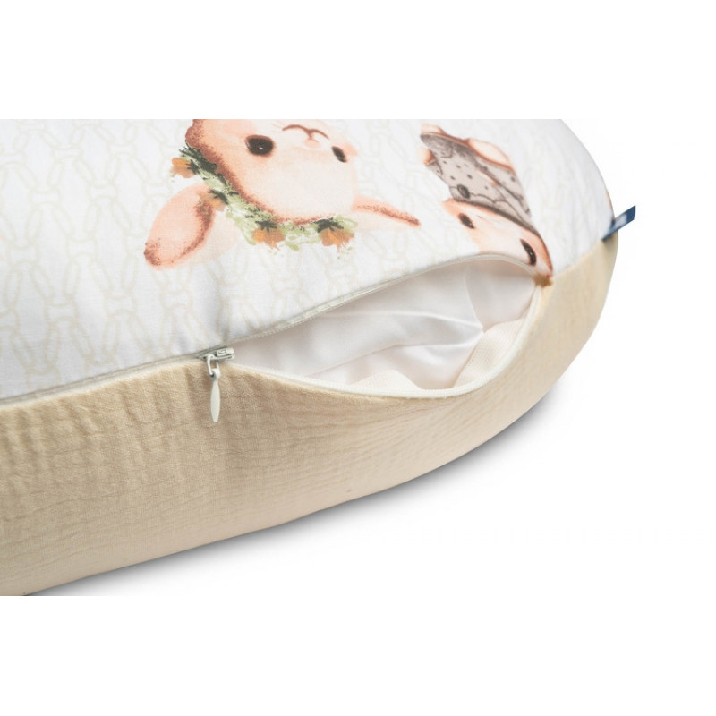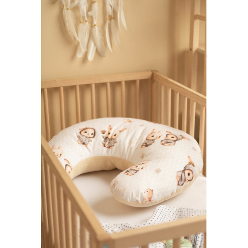 Dojčiaci vankúš, podkova, mušelín, bavlna, Králičci, béžový
