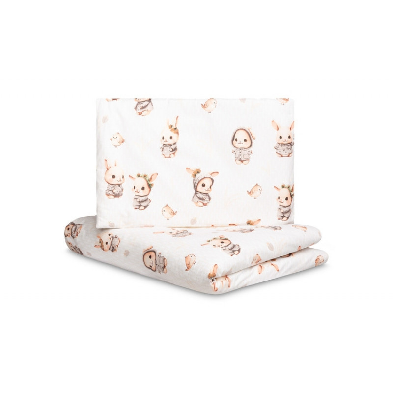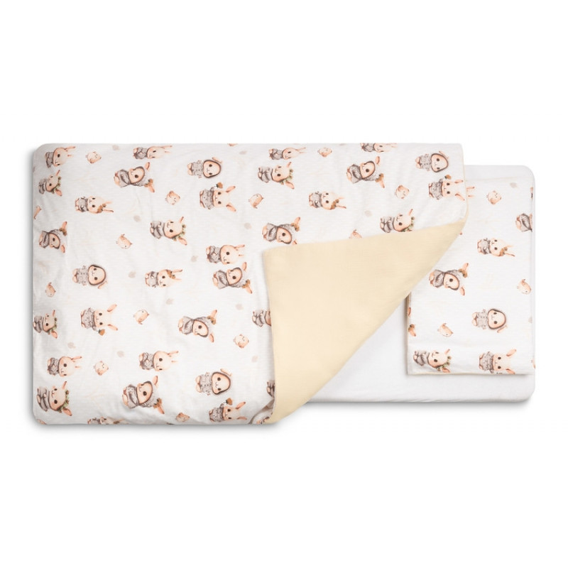 Mušelínové obliečky do postieľky 135x100, Králičci, béžové